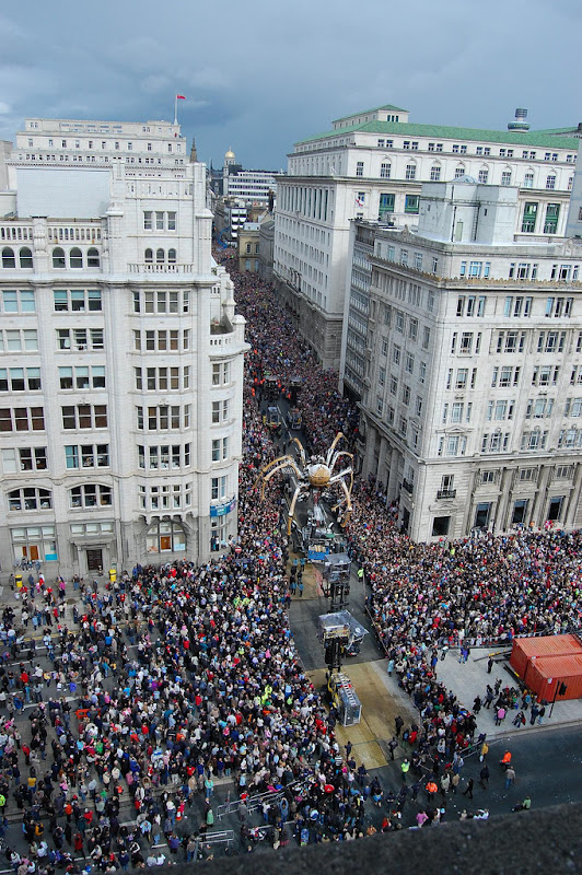 Aparecendo pela primeira vez ao lado de Concourse House, um edifício condenado em Lime Street, a aranha, criada pelo fundador do grupo La Machine, François Delarozière, que também foi o responsável pelo Elefante e pela Garota Gigante da apresentação da Royal de Luxe em Londres, foi levada a Inglaterra pela Companhia Criativa & Fundo de Caridade Artichoke.