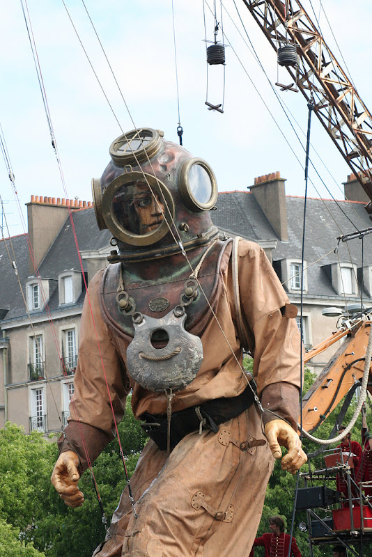 O mergulhador gigante, ou Le scaphandrier géant, como é chamado, caminhou pelas ruas da histórica cidade no início do Festival Estuário das artes de 2009.