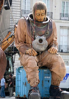 O gigante se levanta, agora equipado com sua indumentária de mergulhador, esperançoso que sua missão logo termine. Sua sobrinha, a Pequena Giganta, se apresentou com a companhia antes, mas ela e seu tio estão separados já faz muito tempo. Como toda performance da Royal de Luxe, existe uma longa história de fundo para o espetáculo. Em 1912 o Titanic naufragou, isso nós sabemos, mas o que não sabemos, é que dentro dele uma giganta era mantida cativa. Essa prisioneira era a mãe de nossa conhecida Pequena Giganta.